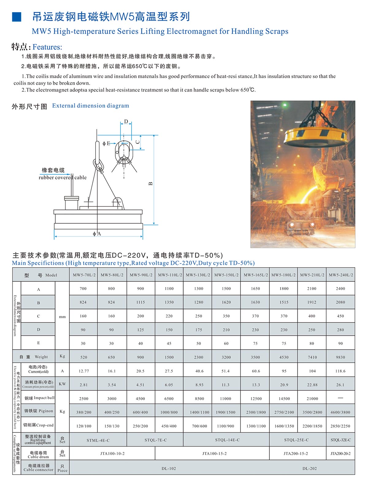 吊運(yùn)廢鋼電磁鐵MW5高溫型系列