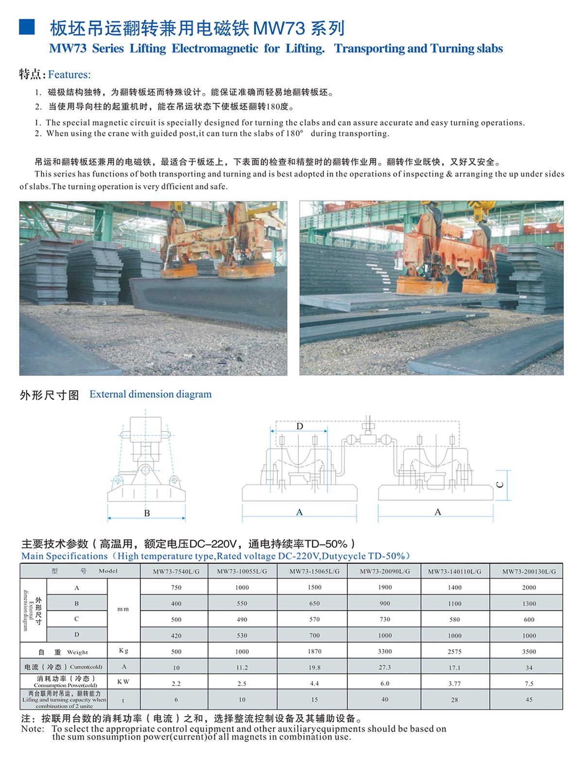 板坯吊運翻轉兼用電磁鐵MW73系列