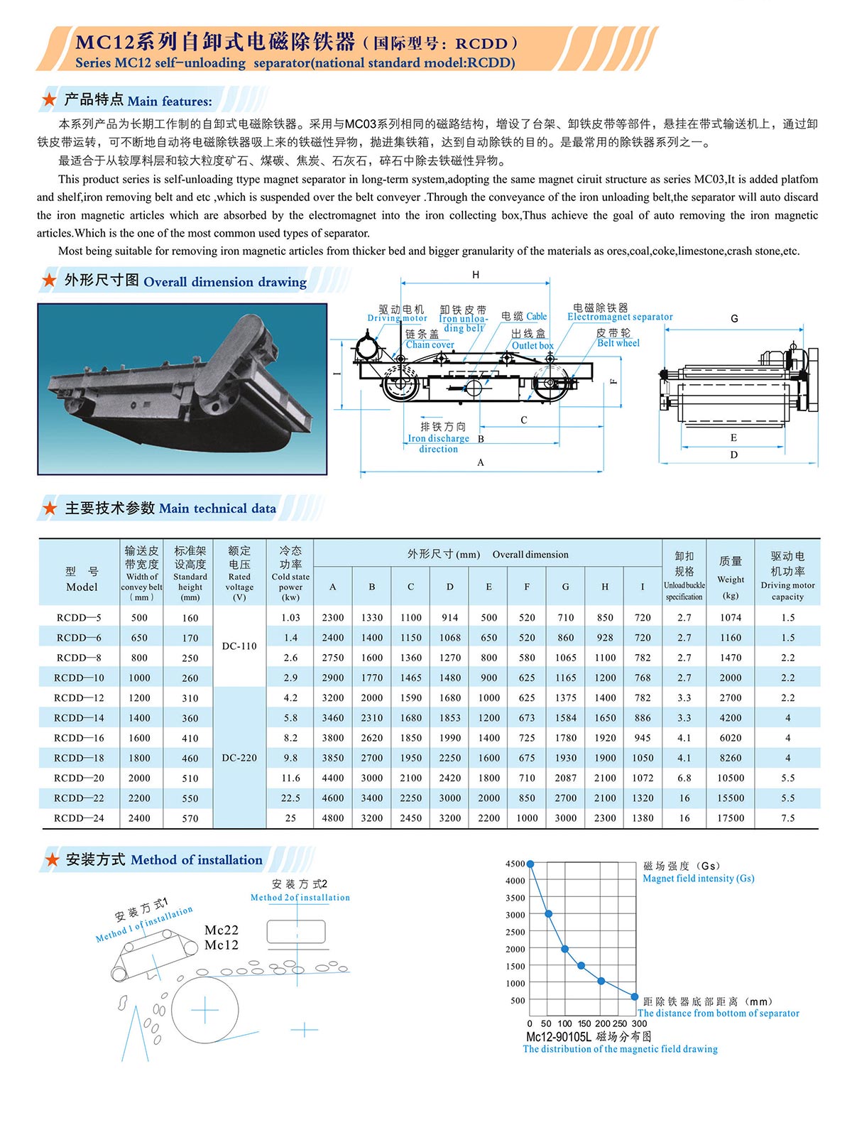 MC12系列自卸式電磁除鐵器(國際型號:RCDD)