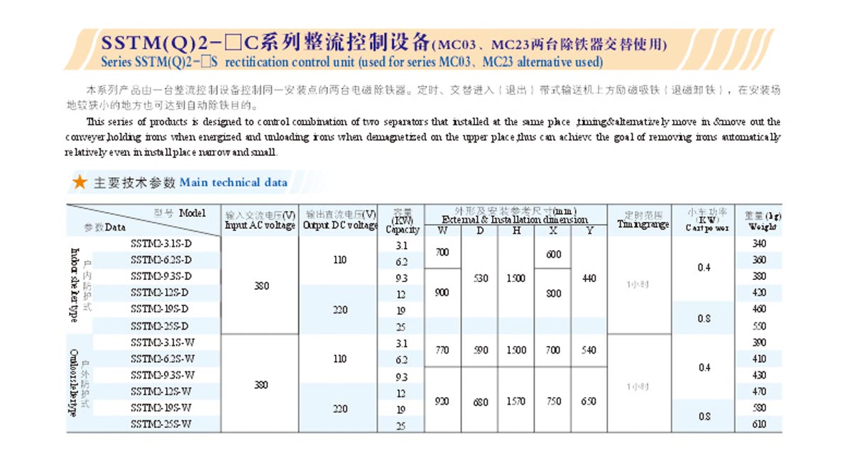 SSTM(Q)2-□C系列整流控制設備(MC02/MC23兩臺除鐵器交替使用)