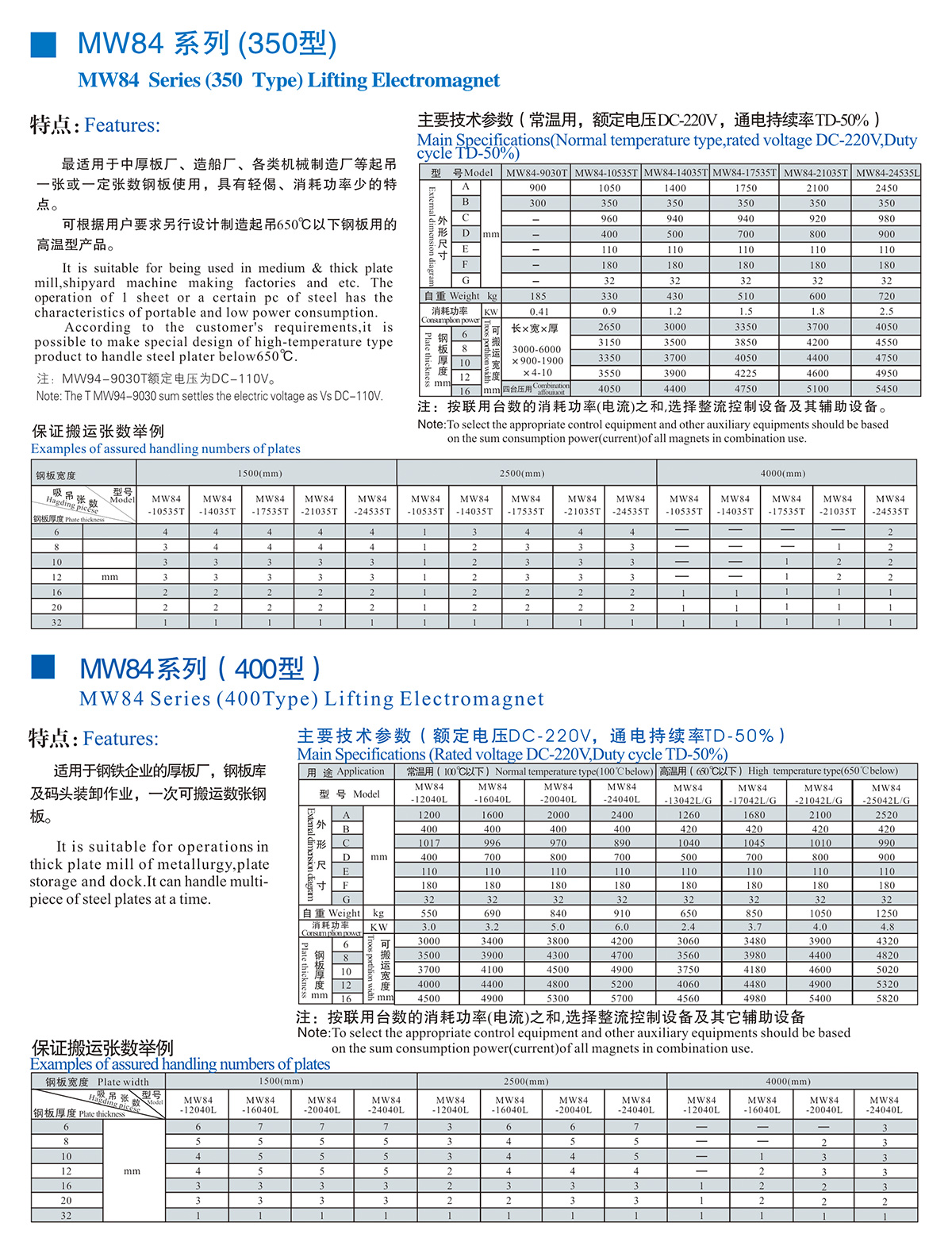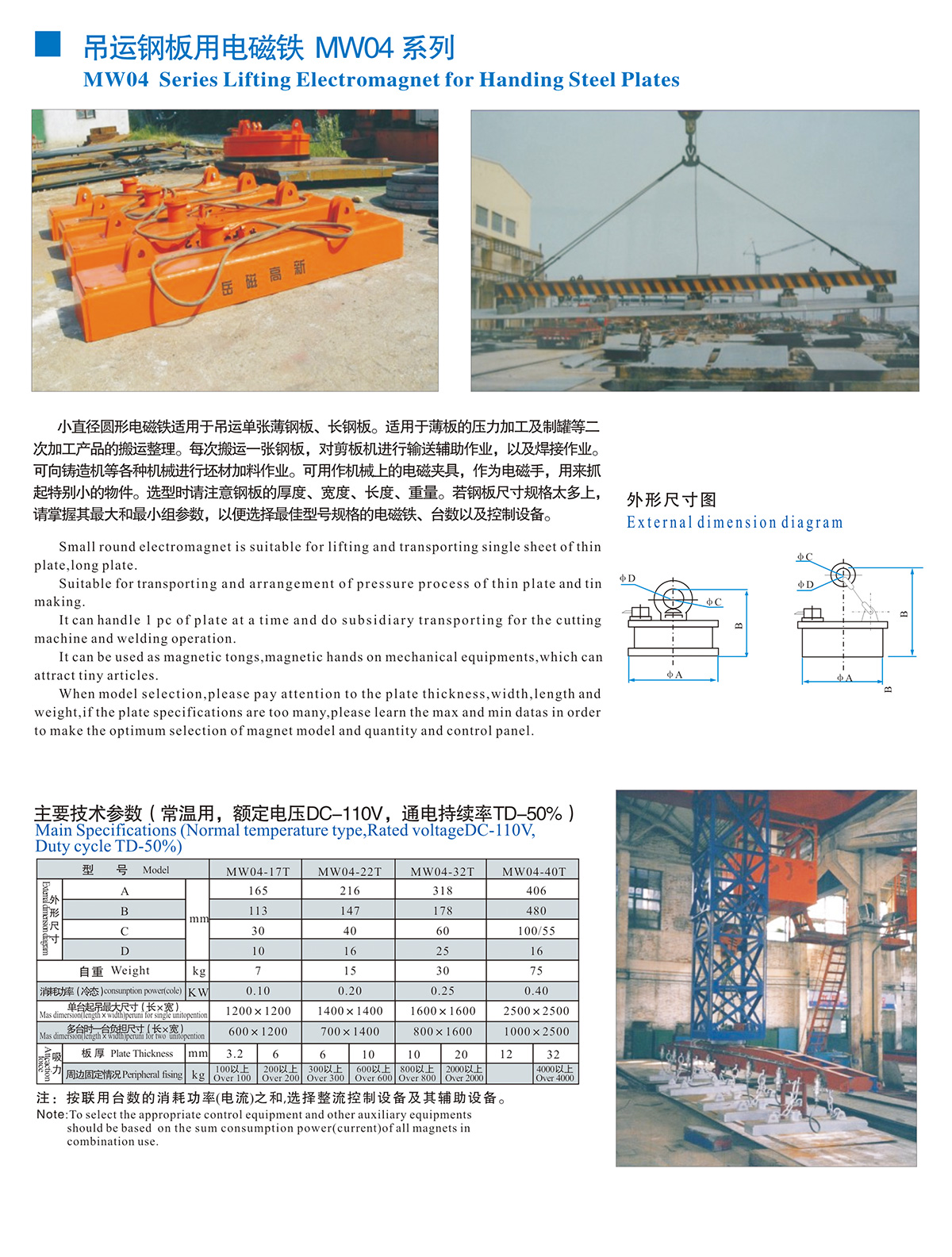 MW84、MW04 Series Lifting Electromagnet for Handling Steel Plates