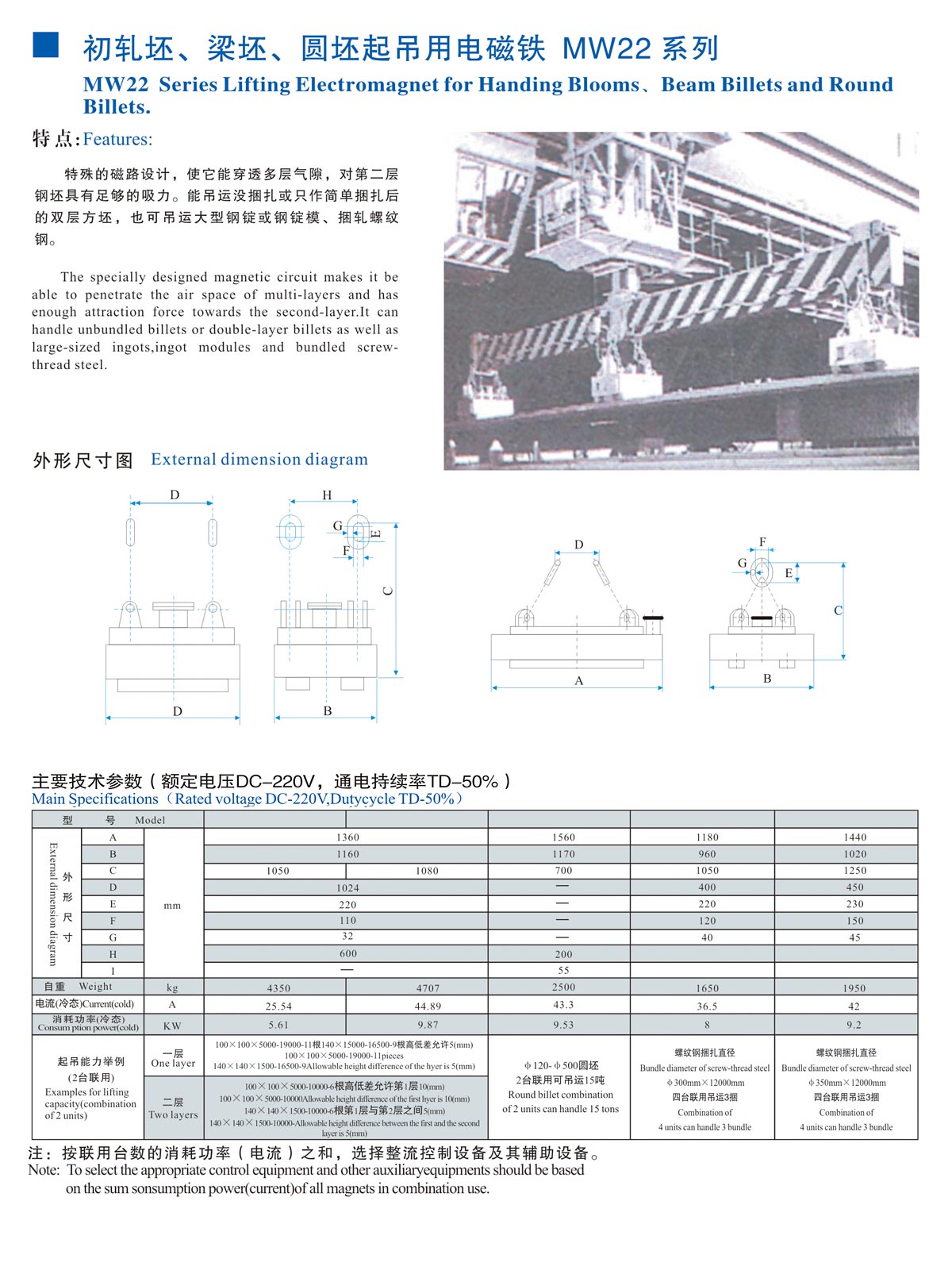 MW22 Series Lifting Electromagnet for Handling Blooms、Beam Billets and Round Billets